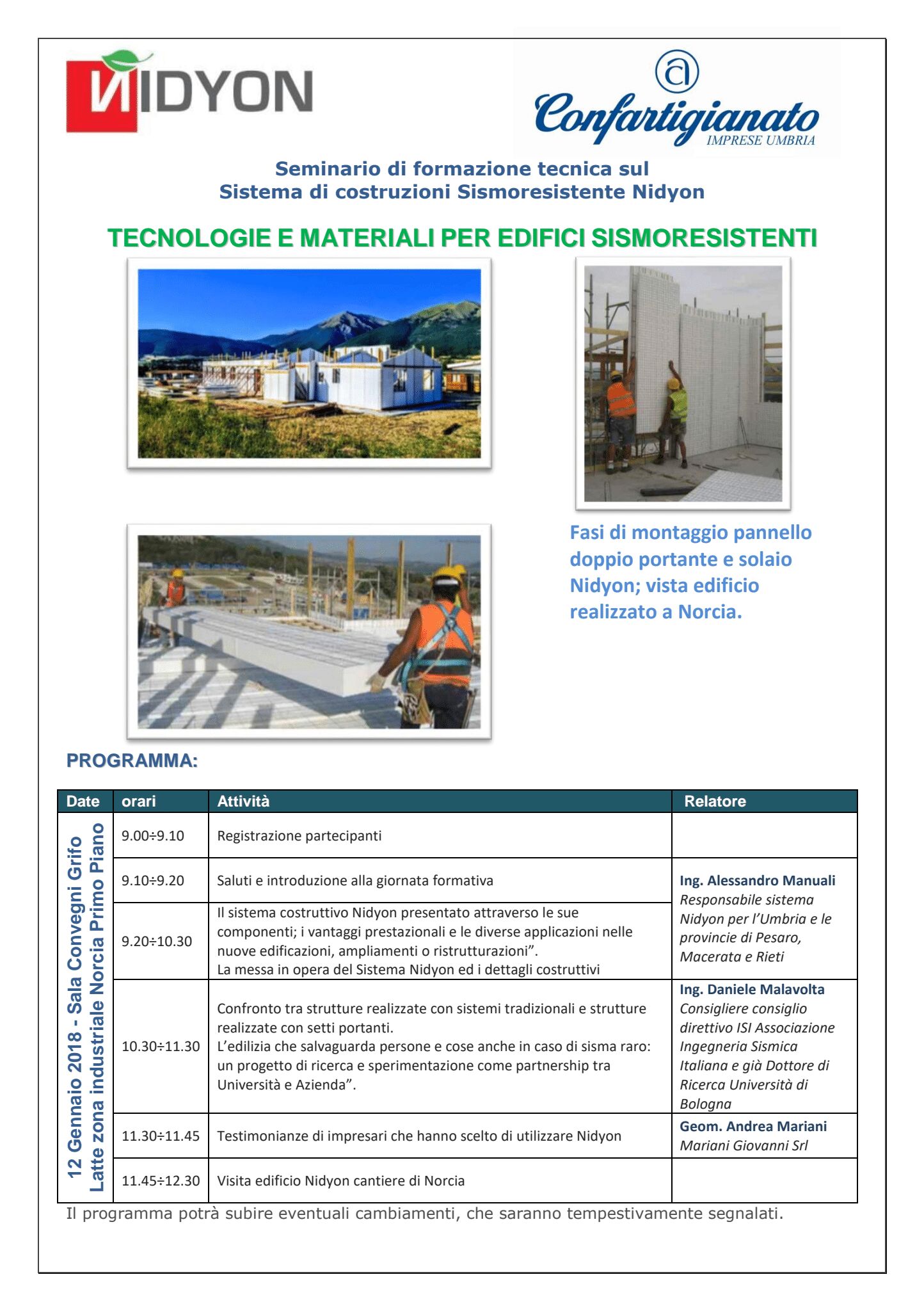 Il giorno 12 gennaio 2018 dalle ore 9:00 alle ore 12:30, presso la sala convegni Grifo Latte nella zona industriale di Norcia (PG) è previsto un convegno come da programma allegato.